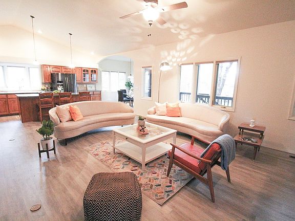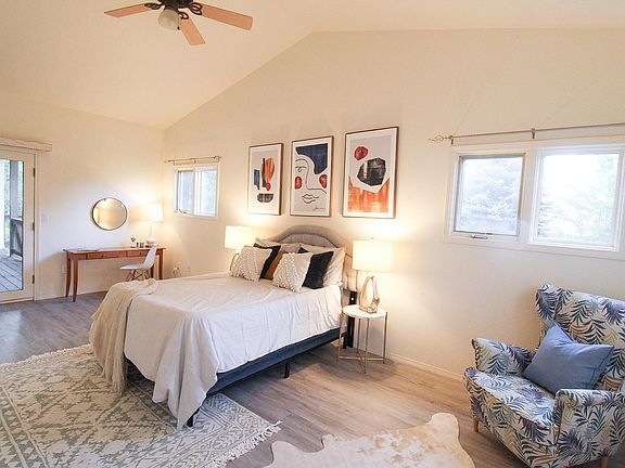 Sky-high ceilings. Enormous master bedroom with its own private covered balcony (bedroom complex alone is 600 sq feet). Updated en-suite bathroom. Walk-in-closet. Jacuzzi bathtub. Stunning new flooring throughout the property. Massive Great Room that connects beautifully to the updated kitchen with custom cabinetry and full pantry. Enjoy morning coffee from the porch with views of your raspberry garden. Full dining room and large additional bedrooms complete the first floor. Ample storage in the basement. Walk to Morey Wildlife Reserve, fish at Buckingham Lake or hike at Mariano Reservoir. Cats/dogs welcome!
