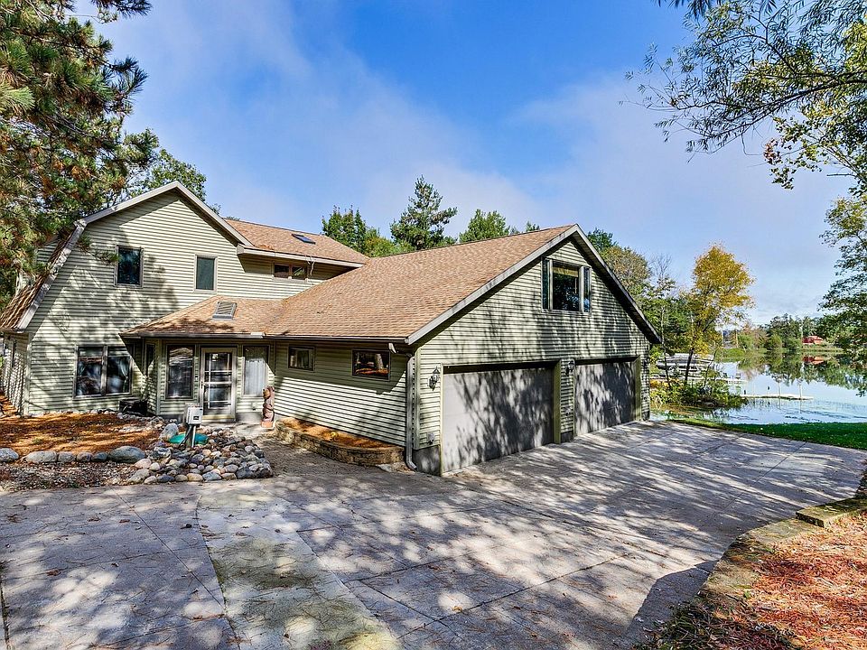 This beautiful year round home on Big Sandy Lake is a 3 bedroom, 3 bath home situated on .70 acres with 120' of shoreline located on a private inlet/bay. Large gathering spaces inside and out on both levels make this an ideal home for hosting family and friends. The main level features a large open concept dining room and living room that walks out to a covered wrap around porch that faces the lake. The upper level vaulted family room is flooded with natural light with 2 glass sliding doors, transom windows and skylight. There is also a cozy sitting room off the primary bedroom that features a 3/4 private bath. The upper wrap around deck provides the space for those who want to catch some sun and and work on their tan. The garage has room for 3 vehicles as there is a guest/bunk room located with in the insulated and heated garage. This home is zone heated and cooled with 4 furnaces and 2 central air units. The storage shed by the lake is wired for a future hot tub, currently just being used for storage. The other sectioned off portion is built out and vented for a wood burning sauna, just need the wood stove for the sauna to be completed. The dock will stay with the house. Lots of cosmetic and mechanical updates with in the last 5 years. Don't miss this wonderful lake home.