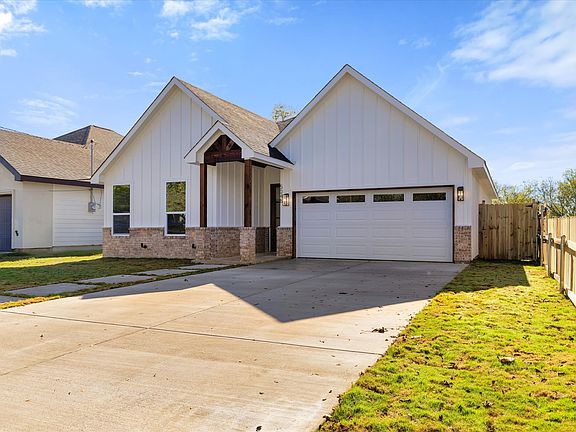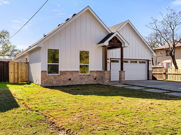Presenting a stunning 3 Bed 2.5 Bath New Construction in the heart of Fort Worth! This home boasts an impressive combination of brick and white siding, a well designed porch and patio with vaulted ceilings and beautiful wood work. Step inside to the remarkable 12-foot ceilings throughout the entry, dining and kitchen space. The kitchen features stylish pendant lights, custom oak wood cabinets, ample shelving, quartz countertops, designer backsplash, gold fixtures, a convenient pot filler and stainless steel appliances, this space is truly a chef's dream. The living room features a vaulted ceiling enhancing the spacious feel of the home. Looking for a spacious master bedroom? Then this is the one! The master bath includes built-in shelving, double sinks, a spacious shower with beautiful design elements, along with a walk in closet. The laundry area includes cabinets for added storage and organization. Backyard is fully fenced, making it perfect for gatherings and outdoor fun! This residence is adorned with countless upgrades, making it a remarkable choice for modern living! Come and check it out this weekend! Just a short distance from Texas Wesleyan Private University, highways and retail.
