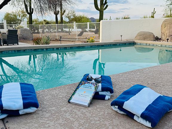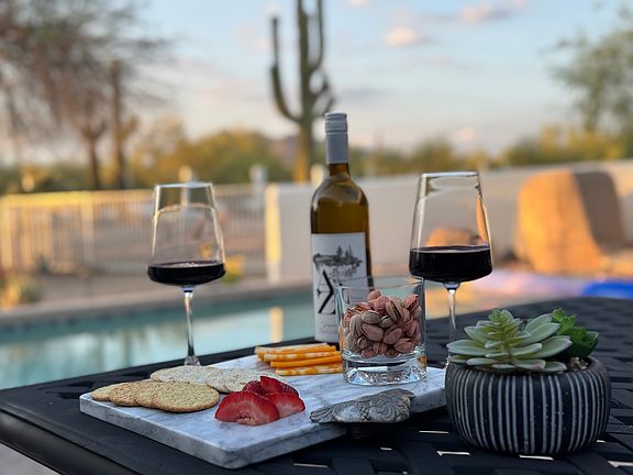 Experience the serenity of our immaculate, charming, and inviting 4 luxurious bedrooms & 3 bathrooms that SLEEPS 14!! Welcome to Bed Rock Desert, your ideal family vacation destination in Cave Creek! Spacious rooms with Twin, Double, Queen and King beds!! Discover the allure of our rustic yet with modern touches with comfort that surrounds you. Perfect for creating cherished memories over a delectable meal that a you've cooked in the fully-stocked & supplied kitchen, with all FULL sized appliances, including ice maker, fridge, dishwasher, stove with glass cooktop, washer, dryer and microwave. Indulge in the unparalleled comfort of our Memory Foam mattresses, ensuring your nights are a sanctuary of rejuvenating slumber. Furthermore, you'll enjoy complimentary access to our entire retreat which offers the perfect blend of adventure and relaxation. Cool off in the refreshing private HEATED pool and enjoy a delightful BBQ lunch in the spacious backyard oasis. Wake up each morning and prepare a delicious breakfast in the recently renovated kitchen, equipped with modern amenities and stainless steel appliances for your culinary delight. Primary Bedroom: 1 King Bed & Twin Bunk Beds with en-suite bathroom 2nd Bedroom: Double Bed and 2 Twin Bunk Beds 3rd Bedroom: 1 Queen Bed 4th Bedroom: 1 King Bed & Twin Bunk Beds with en-suite bathroom FUR BABIES CONSIDERED!! Baby & child items can be provided. AMPLE PARKING AVAILABLE MORE DETAILS about bed & bath configuration: Discover ultimate comfort in the primary bedroom, featuring a King bed boasting a beautiful solid wooden frame, twin bunk beds, a cozy fireplace, a smart TV, exclusive backyard access, and an en-suite bathroom. The attached primary bathroom includes a large walk-in shower with dual rainfall shower heads, dual vanity sinks, and a relaxing bathtub. The second bedroom offers a Double bed, twin bunk beds, a charming furnace, and direct access to the backyard. Nearby, the hallway bathroom boasts a spacious standing shower with a detachable shower head for convenience. The third bedroom provides a serene retreat with a Queen bed and direct access to the backyard, perfect for enjoying the outdoor scenery. The fourth bedroom is designed for families or groups, with a King-sized bed, twin bunk beds, and its own en-suite bathroom. This en-suite features dual vanity sinks and a large walk-in shower, ensuring ample space and comfort for all guests. Each bedroom and bathroom is thoughtfully designed to offer a relaxing and enjoyable experience during your stay. Comparison properties nearby on airbnb: 5/4 $20k/mth 6/6 $16k/mth 6/6 $25k/mth 8/6 $33K/mth DO NOT PAY airbnb fees. NO host charges. NO taxes. NO service fees.