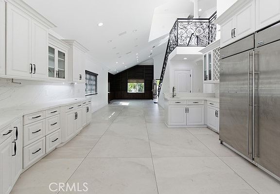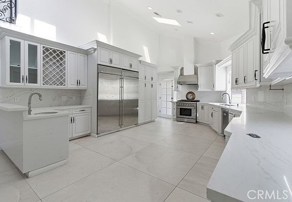 A gorgeous south-of-the-boulevard gated Villa with a high ceiling, open floor plan, and lots of bookshelves, featuring bedrooms & bathrooms on both levels including the full detached guest house. Smooth stucco, tile roof, a long driveway & fruit trees all give this villa a spectacular look. Excellent floor-plan comfortably accommodates seven bedrooms. Interior features include extensive use of granite, marble and stone work with travertine floors throughout the entire home, LED recessed lights, high ceilings, ceiling fans in bedrooms, surround sound, & security camera system. Two master suites (one upstairs & one downstairs), the incredible chef's kitchen features breakfast bar, custom cabinetry, stainless appliances including brand name gas range & a built in refrigerator. Guest room perfect for extended family or private office. Private, cozy backyard with covered patio fenced pool and a long drive for RV access and EV wall charger.