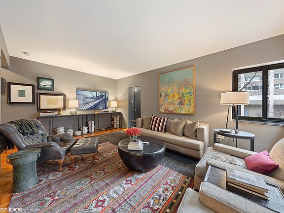 Designer owned unit created by Praed Projects in a beautiful Art Deco building. Completely redone in 2019 with exquisite attention to detail. All walls were scraped and replastered. The parquet flooring was sanded and refinished. Kitchen with custom cabinetry and terrazzo backsplash, quartz stone countertops, Bertazzoni induction range, stainless undermount sink with Samuel Heath faucet and stainless column refrigerator. All new doors within the unit custom designed to match the original Art Deco building lobby door with custom glass. Dining room features wallpaper and matching curtains by Galbraith and Paul and a vintage brass light fixture from the early 1950's purchased in Paris. Adjacent living room offers the perfect space for entertaining and relaxing. Large bedroom with great closet space and custom venetian blinds and polished cotton drapery. Bathroom with subway tile, Kohler pedestal sink and faucet. Beautiful private yard shared by residents. This is a home for the most sophisticated buyer. Located near the Lake Front and Marianos. Public transportation at the door.
