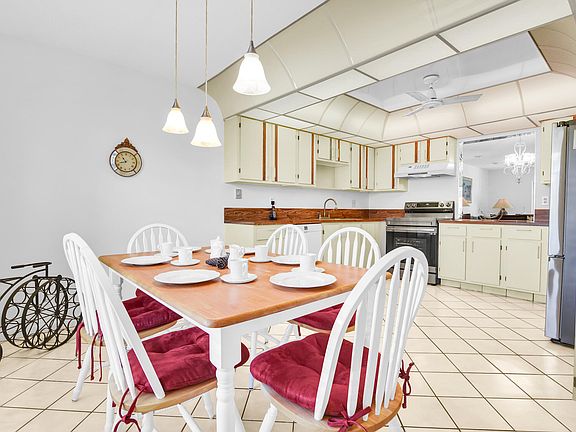 Private neighborhood is a gem! Offering the much coveted Ponderosa Supreme model with 1660 sq. ft.. This end unit is open and airy. Experience pristine appliances in the spacious eat-in kitchen with room for an island too. The 2 bdrm./2 bath one story villa has a grand, mirrored dining/living room which abuts a tiled lanai separated by sliding glass doors. The main bedroom also has a sitting area or office space and (two) walk in closets. An active 55 plus community that loves to entertain. You can spend time in the library, get together to play pool, pickle ball, cards, water aerobics and more. The Bridgeview Newsletter will keep you informed. A block away from two farmers markets, the post office and a gas station. Shopping, restaurants, medical venues close. Just needs your touches!