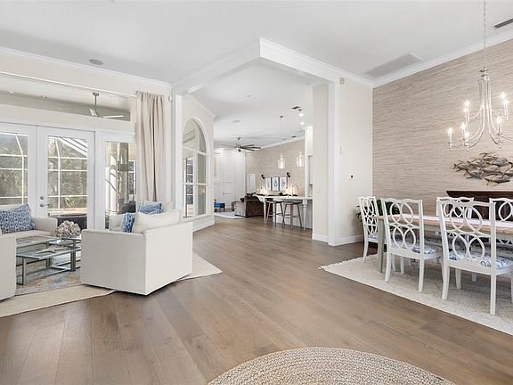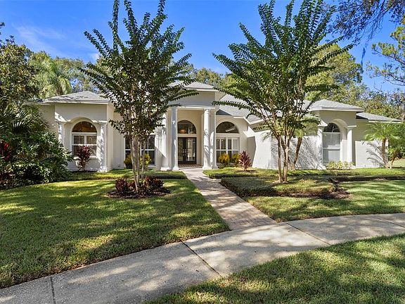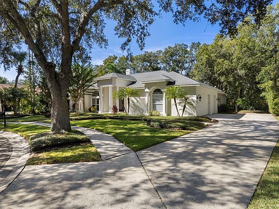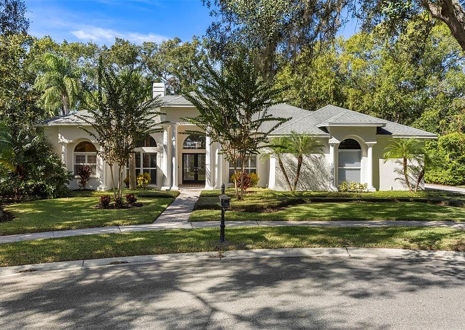 Introducing an impeccably maintained estate home nestled within the prestigious, gated enclave of Huntington at Tampa Palms. Perfectly positioned on a pristine conservation lot at the end of a serene, tree-lined cul-de-sac, this exceptional one-story residence offers the ultimate in privacy, elegance, and convenience—with only one neighboring home. Spanning 3,031 square feet of thoughtfully designed living space, the home features 4 bedrooms, 3.5 baths, a private study, and an oversized three-car garage. Inside, sophisticated architectural details abound, including volume ceilings, transom windows, French doors, and expansive pocket sliders that seamlessly blend indoor and outdoor living. Every interior finish has been designer-curated, showcasing hardwood flooring, custom millwork, quartz and granite surfaces, porcelain tile, and upgraded lighting and fixtures throughout. The split-bedroom layout ensures comfort and privacy, with each room offering serene views of the preserve or lanai. The gourmet kitchen is a culinary masterpiece—appointed with premium GE stainless-steel appliances, a gas range, custom wood cabinetry, quartz “concrete-finish” countertops, a porcelain tile backsplash, and a central island ideal for gathering. Designed for both relaxation and entertainment, the expansive lanai opens to a sparkling pool and raised spa overlooking the tranquil preserve. A summer kitchen with built-in gas grill completes this idyllic outdoor retreat. Additional highlights include a side-load three-car garage with extended depth, 8’ foot garage doors, and high ceilings. The third bay—currently enclosed—offers flexibility for conversion to air-conditioned living space. A fenced dog run adds convenience for pet owners. Ideally located just minutes from USF, Moffitt Cancer Center, the VA and Florida Hospitals, YMCA, Tampa Palms Golf & Country Club, I-75, and regional shopping and dining, this remarkable residence delivers the perfect blend of luxury, privacy, and lifestyle.