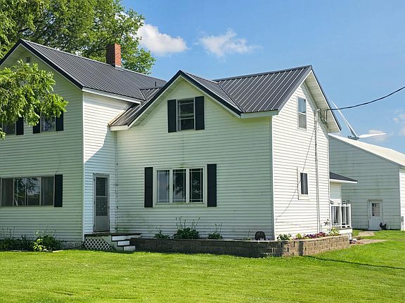 Updated eat-in kitchen, some windows, and roof, 200 amp electrical. Two large bedrooms and an office upstairs. There is a potential for a third bedroom on the main floor. Current owners have remodeled the larger entry and entrance to the basement. New flooring on the main floor. Property boasts 11.79 acres with three pastures. There are three confinement buildings for animals with in-ground pits, seller is currently using them to raise both baby and feeder pigs. Large shop with full concrete, heat, water, power and internet.