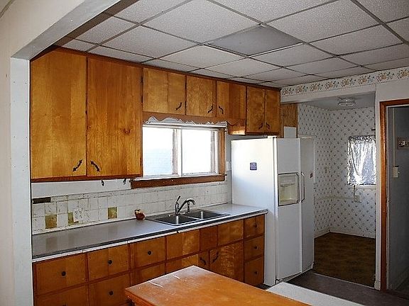 This 107 year old home has a lot to offer at a low price of $38,000 which that figures out to be $36.54 a square foot. Sure it needs a few updates but for the price you can afford to put a little money into it. Plus the 2 bedroom, 1 1/2 baths it has a one car garage with enough space for a workbench in the one end. There is ample room for an RV if you happen to be one of those snowbirds that only need a summer home. For the age of the home the kitchen and living room are very open and both bedrooms are a decent size. Another asset is that everything is on one level so no need to climb steps to do your laundry and it is handicapped accessible.