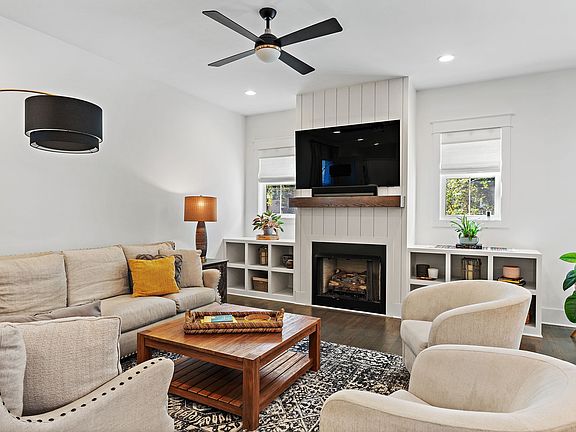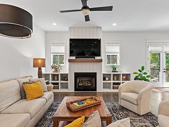 Cozy fireplaceTwo-car garageCustom built-insDetailed trim workBertazzoni gas rangeCovered deckVaulted ceilings
