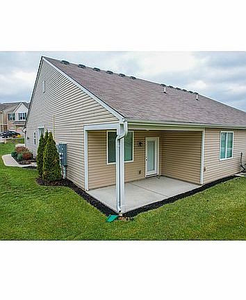 Welcome to this beautifully maintained two bedroom two bathroom patio home in the desirable Cantering Hills at Steeplechase. This home offers easy, no step living with a thoughtful open concept design, all conveniently located on one level. Enjoy a relaxing retreat in the spacious covered rear patio overlooking a lush green space, perfect for peaceful afternoons. Cantering Hills provides fantastic community amenities, including a clubhouse, pool and exercise facility; plus you’ll be just minutes away from shopping, dining and easy access to the expressway, low maintenance living at its best. Home was professionally painted all interior March 2025. New flooring put in both bedrooms and walk-in closet 2025 to match all Barnwood gray flooring in the unit. Speed queen, washer and dryer set purchased March 2025 sells with the unit. Both bathrooms received shower head upgrade with 6 foot extension wand March 2025. This home is move in ready!