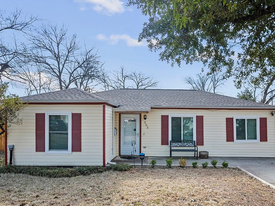 Charming 3 bedroom 2 bath that has been updated and is conveniently located close to 360 and 161. This home boast a large living room with the eat in kitchen right off the living room. The split bedroom floorplan has the guest bedrooms and bathroom off the entry and the main suite, laundry room and main bathroom are off the kitchen area. The spacious backyard has 2 storage sheds and plenty of room to entertain! Recent updates include roof, most of the windows, kitchen range, flooring throughout the main areas and guest rooms, gutter covers and hot water heater.