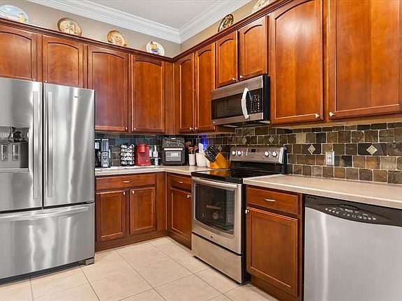 Bright and well-maintained 2-bedroom, 2-bath end-unit condo located in the gated Overlooks at Parkside community. Open-concept floor plan with high ceilings and large windows. Recent updates include fresh interior paint, professionally cleaned carpet, 5-inch crown molding, upgraded baseboards, energy-efficient storm-rated windows installed in 2021, and a new roof in 2025. The AC system was replaced in 2021 and all major systems have been updated for peace of mind. Kitchen offers solid wood cabinets, pantry closet, and premium stainless steel appliances. Primary suite features a walk-in closet, dual sinks, and a tub/shower combo. Additional features include an indoor laundry room with washer and dryer hookups, ceiling fans, window treatments, private balcony, and private attached 1-car garage with opener. HOA covers exterior maintenance, roof, paint, cable, internet, and exterior pest control. Community amenities include pool and recreation facilities. Conveniently located near shopping, dining, and major highways SR 441, SR 429, and SR 436.