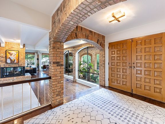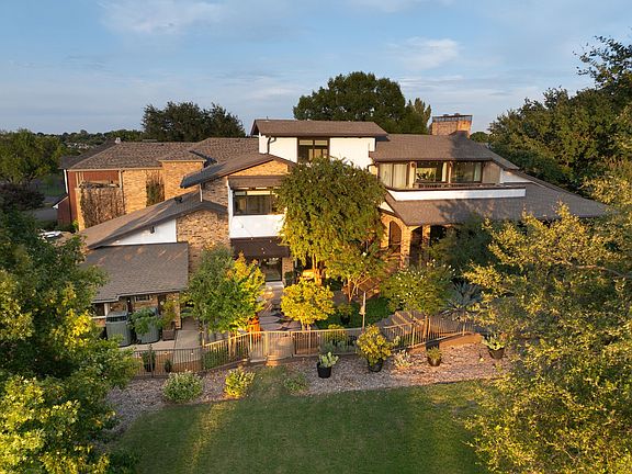 Sellers will review offers on Friday evening, October 17. Reminiscent of the timeless architecture of Frank Lloyd Wright, this home captures art, nature, & function in perfect balance. Positioned across two tree-filled lots, it showcases rich materials, thoughtful symmetry, & a design that invites the outdoors in through floor-to-ceiling windows, arched brick accents, & warm wood tones that create both drama & harmony. The kitchen serves as a showpiece for entertaining & everyday living, featuring quartz countertops, a waterfall island, GE Monogram vent hood, Thor cooktop, glass-front cabinetry, & designer lighting that highlights the travertine floors. The living & dining areas flow effortlessly beneath vaulted ceilings & exposed beams, centered around a three-sided fireplace & wet bar with copper mosaic tile & pendant lighting. The primary suite offers a serene retreat with its own fireplace, soaring ceilings, & a spa-inspired bath with marble finishes, skylights, dual vanities, & generous storage. Every window frames the beauty of the surroundings, capturing lush landscape & scenic lake views to blend privacy with peaceful retreat. Outdoors, multiple patios, stone walkways, & a gated courtyard create inviting spaces for entertaining or quiet reflection. Mature trees, sculptural agave, vibrant cactus, & zero-scape landscaping enhance the natural setting, while architectural integrity & artistic detail define every inch of this remarkable home. Full Features List & Historic Details available.