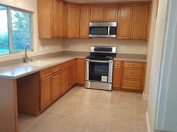 View 360 panoramic view and 3d flyby animation videos..Beautifully Landscaped 4 Bed / 2 Bath Home at Great North East Location ! Remodeled with lots of updates. New kitchen cabinets and Corian counter top. New wall tile work, plumbing, fixtures, shower pen, toilets, sinks, vanities, lighting, mirrors in the hall and master bathrooms. New tile flooring in kitchen, bathrooms, entry way and in 4th bedroom. Popcorn ceilings had been re-textured. Fresh paint interior paint. Water heater had been replaced with a tank-less gas water heater. New lights, electrical outlets and light switches throughout. New fence on both sides of yard. Ceiling fans installed in every bedroom. New energy efficient dual pane windows and sliding glass door. Home received new stucco / color coat and exterior paint. New central air conditioner on ground on the west side, evaporation cooler on east side of the home. Beautiful landscaped backyard with covered patio. Gated front porch with refreshing view of landscaped front yard. Permitted garage conversion into 4th bedroom. 1 car attached garage. Appliances will be installed and carpet will be stretched.