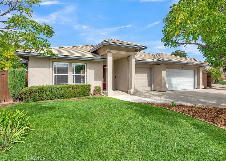 Enjoy the sprawling single story layout of this 4 bedroom single story home with 3 car garage on a quiet corner lot. The perfect location in desirable Meadowlark Farms on a corner lot of a cul-de-sac with very low traffic. This home is perfect for a large family or entertaining! The interior offers 2070 sq ft with cathedral ceilings, laminate flooring, stainless appliances and a gas fireplace. The master Suite features walk-in closet and the master bath has a sunken tub and separate shower. The three car garage is enormous and has plenty of space for vehicles and work area including bench and cabinets. There is an extra bonus of a water softener, & whole house water filter. The lush back yard has covered patio area, producing fruit trees, raised beds for gardening, urban chicken coop and fantastic hot tub with deck. Schedule your showing today!