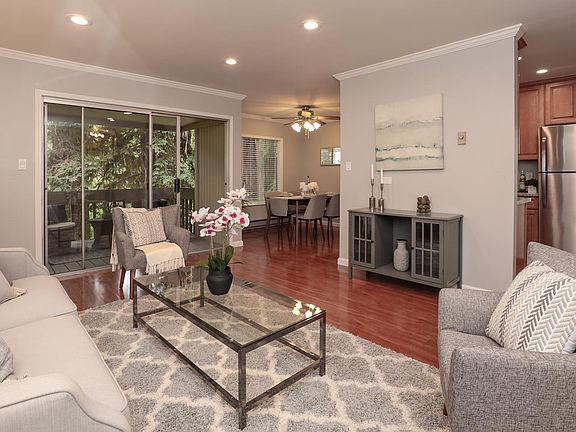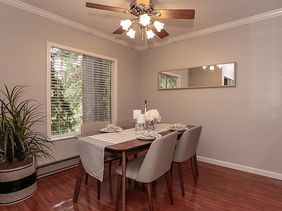 Phenomenal top floor condo in coveted Cypress Point Lakes! This remodeled one bedroom one bath condo welcomes you w/tons of natural light! Gleaming & sophisticated manufactured hardwood floors reflect and enhance the sunshine/warmth. Beautifully remodeled brand new kitchen with custom cabinets and new stainless steel appliances opens to a sun splashed dining area/spacious living room. Lush mature trees & greenbelt welcome you each morning from the eat-in area off the kitchen or enjoy the view w a serene cup of coffee out on the large balcony - perfect for entertaining! One designated covered parking space and ample guest parking. This sought after community features beautiful lush grounds, cherry blossom and redwood trees, and amenities including a swimming pool, tennis courts & club house. Walk just one quarter mile from upscale Castro Street & Downtown Mountain View w/ top rated eateries and nightlife. Easy commute access to Silicon Valley and beyond. This home is not to be missed!