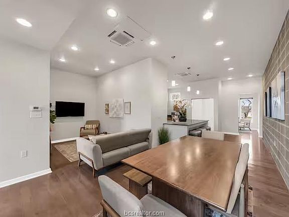 Modern, stylish, and versatile—this three-story townhome in the heart of Bryan is just one block off Texas Avenue and Downtown attractions, and a short drive to Texas A&M and Legends Event Center. Designed for comfort and convenience, it’s equally suited for everyday living or as an income producing short-term rental. With 4 bedrooms, 3.5 baths, multiple living areas, and two decks, this home easily accommodates up to 9.