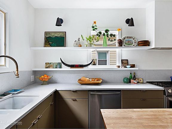This huge five-bedroom, two-and-a-half-bathroom fully detached Kensington home is a Brooklyn house hunter's dream! Built in 1925, it's on a tidy residential block and has a lovely, welcoming front porch. As you enter the house, you'll find yourself in a big open-plan space that comfortably accommodates a living and dining area. The front bay window and two additional side windows let in tons of beautiful sunlight, which lends an airy feel to the room. An adjacent powder room is conveniently situated right off this area. Beyond this pleasant main space is a bright, newly renovated designer kitchen that has many wonderful features: two exposures, custom open shelving, honed Caesarstone countertops, a Bosch range and dishwasher, a Fisher & Paykel paneled refrigerator, stylish light fixtures, a handsome Waterstone faucet, a bar area with storage, and recessed lighting. On the second floor you'll find three large, sunny bedrooms, one of which is a master bedroom that has two closets and an expansive picture window. In the hallway there is a full bathroom. The third floor of the house has two very charming additional bedrooms, one with a cozy built-in window seat and both with lots of storage space. A back door off the kitchen opens onto a durable ipe deck and an inviting yard that has an established garden and plant-based SYNLawn artificial grass, which is incredibly easy to maintain, drains well, and looks like the real deal. The house also has a finished windowed basement that a has good storage, a full bathroom, a washer/dryer, and ample space for a family room or play area. There are energy efficient double-paned windows, hardwood floors, and original details throughout, as well as central air and convenient two-zone heating. Other recent improvements include new insulation, and in 2013, a gut renovation which included new plumbing and electrical systems,, and a new roof and boiler. Possibility of legal curb cut for parking with an alteration of the front porch. Close to the F/G trains, this ideal Brooklyn house is right near shops, services, and restaurants on Church Avenue and Ft. Hamilton Parkway including the excellent organic Thai Farm Kitchen, Hamilton's, and Jaya Yoga. In addition, the house is also minutes from Prospect Park and in close proximity to Ocean Parkway's dedicated bike and pedestrian path.