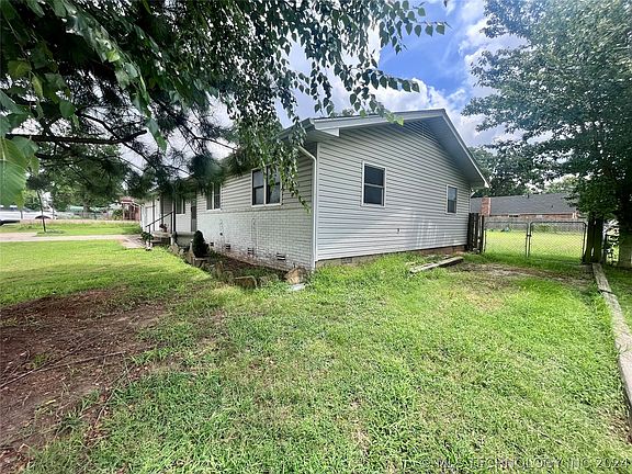 Charming 4 bedroom, 2 bathroom home with 2 car garage sitting on 3 lots. Living area, separate formal dining area with built in cabinetry, spacious kitchen with plenty of counter space, and separate laundry area with sink. This home has the perfect set up with the primary bedroom on the West side of the home for privacy, which boast's it's own bathroom and built in cabinetry. 3 guest bedrooms are on the East side of the home with a guest bathroom. Vinyl flooring was updated 4 years ago, 1 central heat and air unit replaced 4 years ago with duct work put in attic instead of floor, and more. Fenced, oversized back yard with two storm cellars. Selling AS IS. This won't last long, call to schedule your showing today! More pictures coming soon.