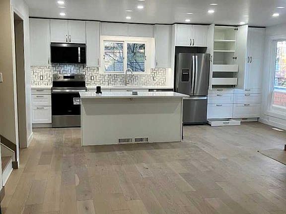 Click brochure link for more details. Newly renovated 4 bedroom 3 bathroom house with high end products; close to lake and central to 3 schools. The kitchen features all new stainless steel appliances, a pop-up receptacle in the island, quartz countertops with under cabinet lighting and a double stainless steel sink. Below the sink is a tip out compartment. Each of the 2 Pantries has 2 inside drawers and 2 lower drawers as well as kick-spot drawers. Outside offers a mature landscaped yard with a partially covered and gated deck for a hot tub, outdoor barbeque or play space. Throughout the home there is plenty of new electrical features including fiber optic cable (CAT-6) for high speed internet to the living room, media room and all the bedrooms. There are new outlets in the kitchen and media room with USB and Class A phone charging ports. This home features a new high efficiency furnace and a new 50 gal hot water tank. The 24'x24' heated garage is powered by a 40 amp panel with three additional workbench receptacles.