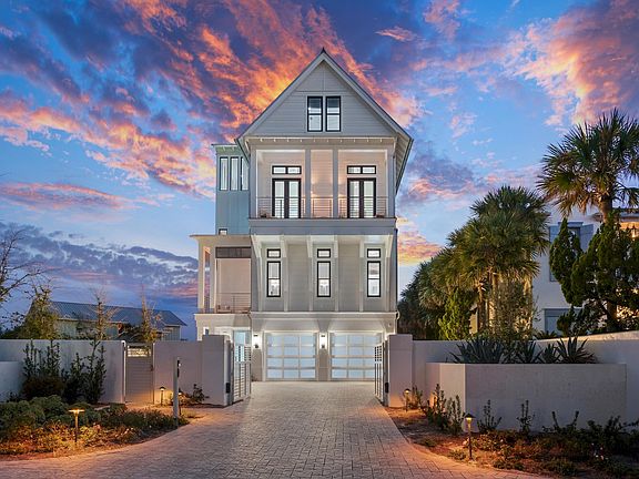 Welcome to your coastal sanctuary, a rare Gulf-Front masterpiece in Santa Rosa Beach Florida that redefines luxury living. This exquisite new build offers everything in luxury living.This five bedroom beach retreat, designed by renowned architect Geoff Chick, combines the ultimate in Coastal Elegance, including a walled and gated entry, an infinity pool blending into the Gulf as a background, an outdoor kitchen, and subtle outdoor lighting at night friendly to sea turtles,Upon entering, you are greeted by sweeping Southern views of the Gulf from nearly every room. To the East and North, patios and porches also give views of an iconic coastal dune lake stretching for miles. Each exterior room brings in natural light and sublime vistas of the Gulf, the Coastal Dune Lake, or both. This home is carefully crafted to embody the spirit of the Florida Gulf Coast Coastal Sanctuary. The gated entry ensures privacy while porches on each floor maximize your view of the different bodies of water. The open floor plan on the main floor seamlessly integrates indoor and outdoor living. The third and fourth floors have cozy, quiet places to enjoy a good read and time to reflect. Porches on the third and fourth floors continue the calm spirit, with the ability to enjoy the sound system built into the porches and main rooms throughout the house. Whether you want solitude to enjoy family or you want a welcoming space to entertain friends, this is the house for you.