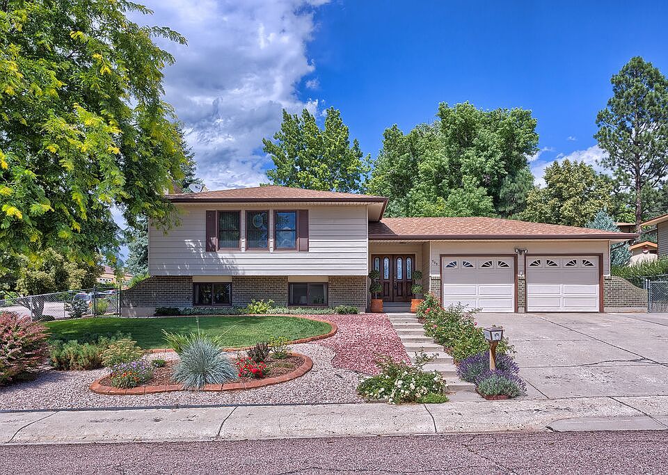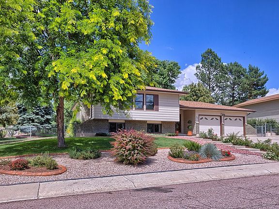 Exceptional Widefield Home featuring wonderful mature trees and stunning landscaping and sprinklers. Welcoming entry with tile flooring. Wood floors on the main. Recently remodeled kitchen features lovely granite counters and beautiful cabinets. Spacious master bedroom plus 2 more main level bedrooms. Large bedroom downstairs & another LG. room could be craft room,office or 5th bedroom.HUGE laundry room. Lots of storage. Amazing covered patio to enjoy the scenic fenced backyard. Air conditioning to keep cool this summer. Landscaped to make you feel like you are secluded. Dog run and RV parking too! Close to schools, parks, and shopping. Easy access to get to Ft. Carson as well.