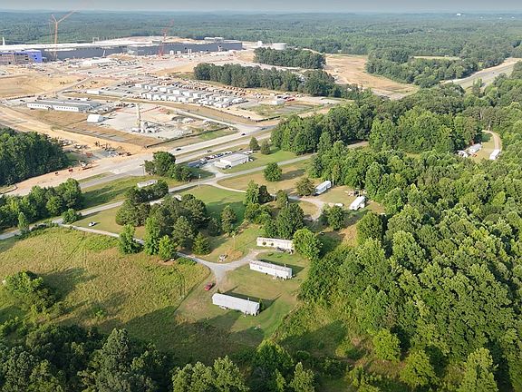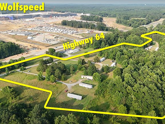 Over 19 Acres Situated across Highway 64 from the prestigious Wolfspeed Silicone Carbide Manufacturing Megasite. This is a unique opportunity for those looking to capitalize on the area's burgeoning economic growth. Fantastic road frontage and two entrances (north and south) on Graham Moore Rd from Highway 64. Located in the Siler City ETJ & Opportunity Zone, and close to the Carolina Core development. There are currently 9 trailers (or mobile homes) which generate a monthly $4200 in cash flow. 5 contiguous lots with individual septic systems and power meters. 2 wells.