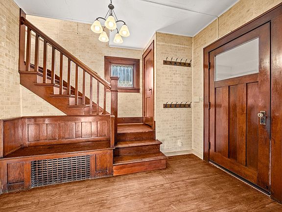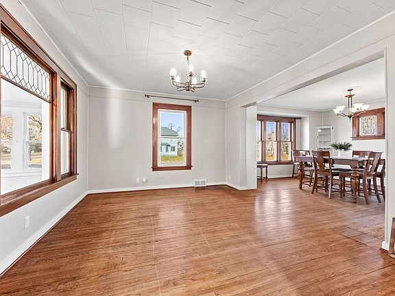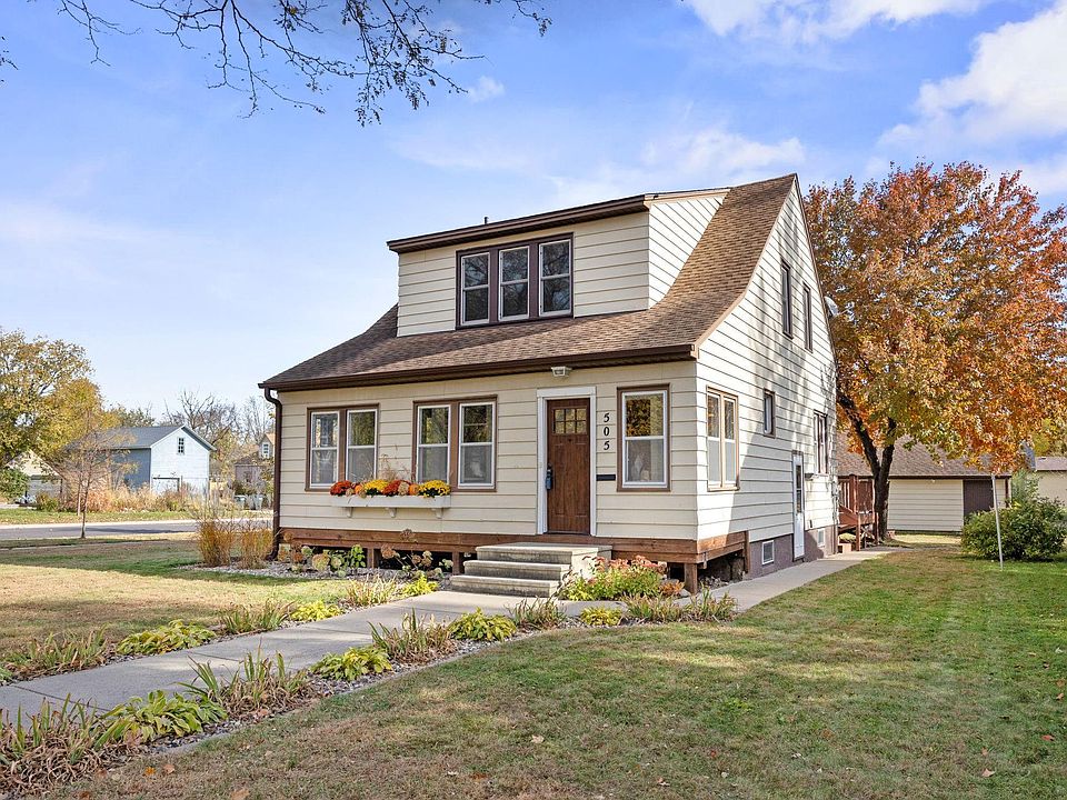 Welcome to this charming three-bedroom, two bath bungalow in the heart of southeast Hutchinson and close to downtown! This home features beautiful hardwood floors, tall ceilings, and an open, welcoming entryway with built-in bench, open staircase and pocket door. Enjoy summer days in the 3 season porch. the upper level boasts all three bedrooms and new bathroom with the latest finishes for easy living. The two-car garage provides ample space for vehicles and storage. Don't miss out on this delightful home that perfectly blends comfort and style.