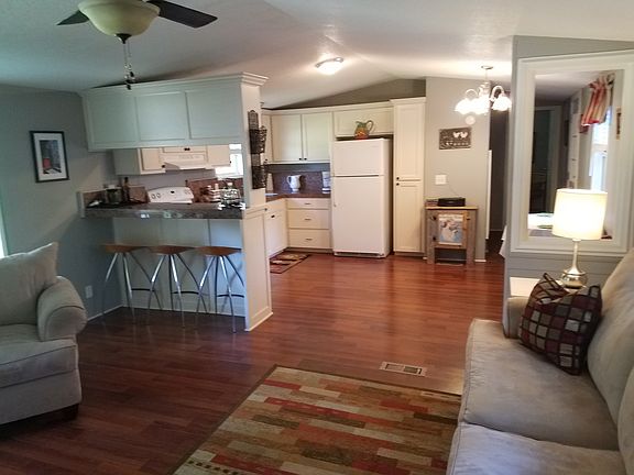 Cedar Oak Mesa Well Maintained Manufactured Home Features: Inviting covered front porch w/ ceiling fan, 4 Beds, 3 baths, 1,564 sq. ft, Kitchen w/ open floorplan, custom wood cabinets, granite tile counters, & breakfast bar, and Dining Room open to a generous sized Family Room with vaulted ceiling. Large Primary Suite w/ walk-in closet, large private bath with ceramic tile flooring, granite tiled counters, makeup nook, linen cabinet, & integral tub surround. Secondary rooms are ample sized in Mother-in-Law configuration w/ private full bath featuring ceramic tile flooring, limestone tiled vanity and tub surround, & built-in bookcase in the 3rd bedroom. Separate laundry area w/ storage, Secure Mud Room off the back w/ electrical connections. Attached Studio Apartment w/ Full Bath, closet, and Kitchenette, separate entrances, dedicated electrical panel & water heater, Hardiboard siding, and private rear stone patio. Other Features include: New 10/2020 McElroy Galvalume Metal Roof w/ 20 year warranty, Laminate flooring (no carpet), Double pane Double Hung windows, window treatments, multiple crawlspace access points, Limestone Skirting, security lighting, partially wood fenced back yard, large concrete driveway with RV electrical hook-ups. Property is nestled on a tree shaded .229 acre corner lot. Community Amenities include Key Accessed Pool w/ restrooms, picnic area, and Blanco River deeded access to recreation areas including gated community park & gated parking area, both within walking distance. Move-in Ready!