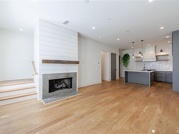 Gas-log fireplaceOpen modern layoutDedicated office spaceQuartz countertopsGeothermal hvac system
