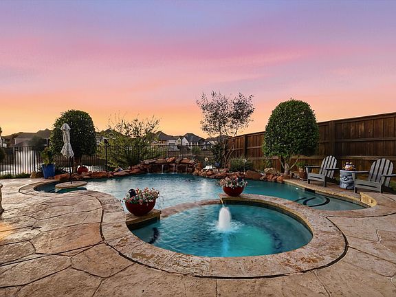 Highly Desired Floor Plan. BALCONY WITH VIEW! EVERYTHING HAS BEEN DONE. SIMPLY MOVE IN! 5 Beds, 4.5 Baths, Study, Game Rm, Home Theater with Surround Sound Pre-Wire & Riser Seating, 2 Dining, Garage with Epoxy Floors & Custom Cabinets. TWO BEDROOMS ON THE FIRST FLOOR Perfect for Mother-in-law Suite, Multi-Generational Living, 2nd Office, Home Gym, Nursery. Soaring Ceilings, Sweeping Staircase, Wood Floors, and Gas Fireplace. Designed For Elegance and Everyday Comfort. The Granite Kitchen Features Upgraded Knotty Alder Cabinets, NEW (2025) Backsplash. GAS COOKING, Walk-in Pantry, Pots & Pans Drawers, Microwave & Convection Oven, Large Serving Bar, NEW (2025) Pendant Lighting. The Primary Suite Accommodates Your King Size Furniture. The Spacious Primary Bathroom Has Separate Vanities, a Walk-in Shower with a Seat & Rain Head. Dual Custom Closets. Spacious Bedrooms & Closets. Storage Under the Stairs. Energy Efficient, Tankless Water Heaters, Radiant Barrier, Storm Doors, Storage Shed, Cedar Board on Board Fence, NEW (2025) Pool Filter, NEW (2025) Pool Pump, NEW (2025) Spa Lights. Located at the Corners of McKinney, Frisco, and Prosper. Minutes to Stonebridge Ranch, TPC Golf, Shopping, Dining, Movie Theaters, Hospitals, & Highways. This Home Has It All. Do Not Wait.