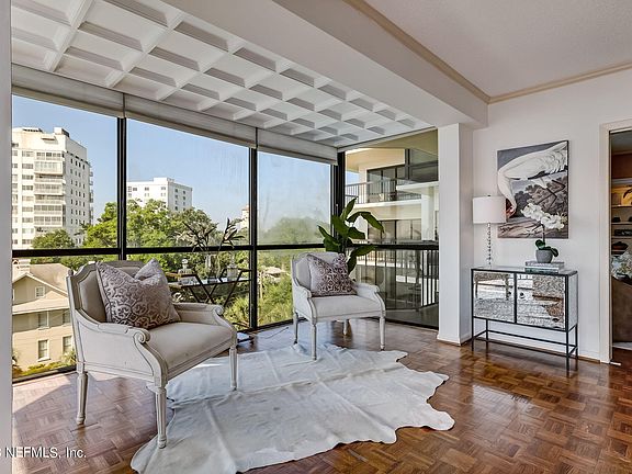 Experience breathtaking city and waterfront views from Park Plaza Condominium's unit 5A! End unit layout offers panoramic views from downtown south to San Marco, up the river towards Mandarin and over to Ortega Point! Layout features formal foyer that leads to open & shared living, dining and sun rooms with floor to ceiling windows and access to riverfront balcony, kitchen is fully equipped and features granite counter tops + pantry and laundry room, private master bedroom is tucked away & offers ensuite bath, walk-in closet and balcony access and 2nd bedroom currently serves as study but could easily be converted back to guest suite. Park Plaza is perfectly situated along the river in the heart of Riverside just blocks from Memorial Park, fab restaurants, the Cummer Gallery and downtown!
