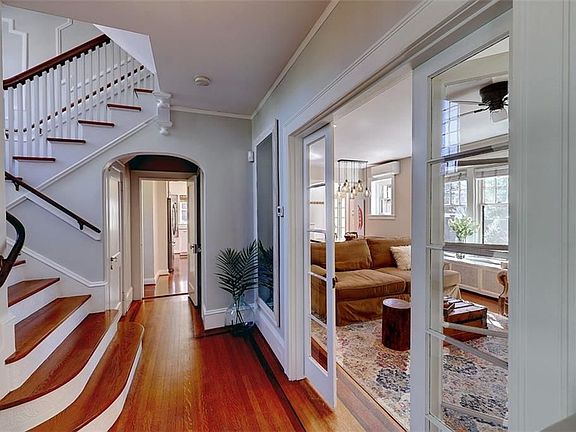 This delightful home has over 4,000 square feet of beautifully renovated living space. A welcoming entry foyer with craftsman inspired architectural details flanked by a great room with fireplace and rich wood details, a family room that opens to a fully equipped chef's kitchen with stone counters and white cabinets. A lovely sunroom steps out to the stone terrace and beautifully planted city garden. The second floor has two bedrooms and two renovated tile baths including a generous master suite, a study, laundry and home office. The third floor includes three additional bedrooms and a full bath. Warm hardwood floors, rich architectural details and ductless air conditioning add to the many amenities of this wonderful home. A two car garage and professionally landscaped corner lot all just steps to Wayland Square and you have the perfect East Side home.