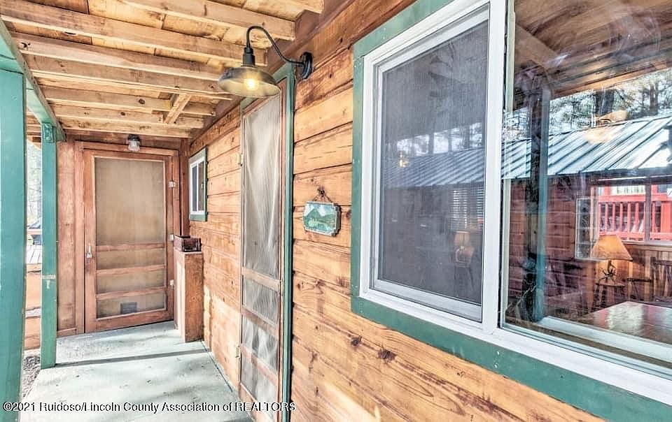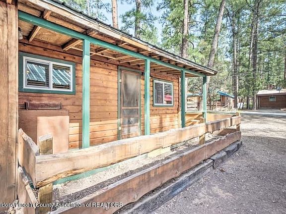 Cute cozy love nest with the ole fashion Ruidoso Mountain charm in upper canyon. This little gem has generated some decent income for the seller through AirBNB, Knotty pine, tile floors and a corner fireplace to keep you toasty warm in the winter. Perfect little get away for you love nesters. Living area allows room for a futon or fold out couch for the kiddos. The covered deck is just as cute as the cabin itself. Seller has replaced the windows and the wall heating units. Ample off street parking and not only close to the river but close to all the action that Ruidoso has to offer. Tall pine trees cradle this cabin. If you are looking for a little money maker that people seek here in Ruidoso, this is it! Pictures provided by the seller from his internet rental site.