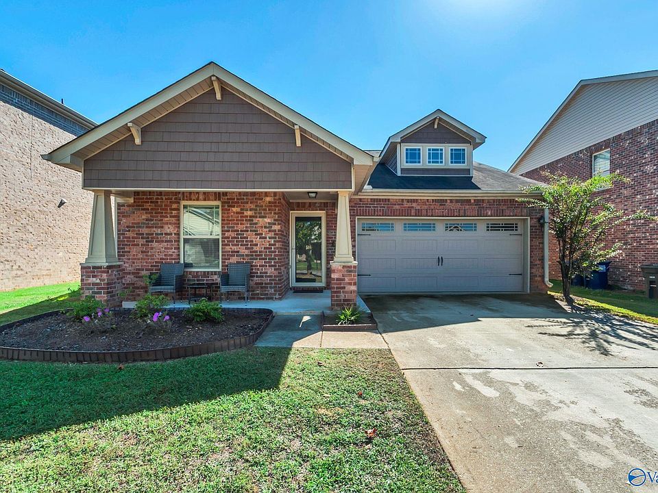 Craftsman-style full brick 4-bedroom home in desirable Clayton Cove. Conveniently located near Providence, Redstone, Bridge Street, Clift Farm, and more. Features brand new hardwood flooring throughout and an open-concept layout with a spacious living room flowing into the kitchen. The large kitchen island, granite counters, pantry, and eat-in area offer both style and function. The isolated master suite includes dual vanities, a soaking tub, separate shower, and a walk-in closet connecting to the laundry room. Enjoy a covered patio overlooking the private, fenced backyard—perfect for entertaining.