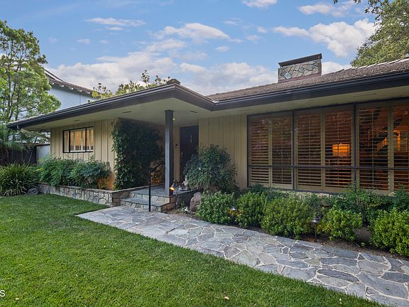 Don't miss this single-story three bedroom, two and a half bath home never before listed on the market. Nestled in the treetops of Whiting Woods, this mid-century property boasts an impressive lot size over a quarter of an acre. The long driveway leads to an attached garage as a stone path invites you up the covered entry. Features include wood-beamed ceilings, two large fireplaces, expansive living and family rooms, a wet bar for entertaining, and tall picture windows throughout. Take in stunning mountain views while relaxing poolside in a private backyard secluded by abundant greenery.
