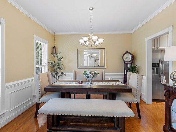 WELCOME to this elegant, meticulously maintained home in the heart of Wake Forest. The main floor showcases gleaming hardwood floors, crown molding and a seamless open-concept design. The spacious eat-in-kitchen is a chef's delight with stainless steel appliances, beautiful cabinetry and direct connection to the family room where a cozy fireplace with gas logs creates the perfect gathering space. A formal dining room adds a touch of sophistication for entertaining. Step outside to a gorgeous deck overlooking a private, wooded backyard, an ideal spot for relaxation for hosting guests. Upstairs, the expansive primary suite offers a spa like retreat complete with a soaking tub, walk-in shower, double vanity and large walk-in closet. Two additional bedrooms plus a versatile bonus room provide plenty of space for family and guests. The finished two-car garage (2024) with Polyurea/Polyaspartic flooring offers both style and functionality with room for storage. Roof replaced in 2019, exhaust vent and microwave replaced 2024. Beyond the home itself, the location is a true highlight. Just 0.3 miles away, you'll find a scenic greenway with a tranquil pond - a beautiful place for morning walks or quiet reflection. The same distance also leads to a community pickleball court and fishing deck, perfect for recreation and leisure. Nestled in a quiet, lovely neighborhood, this home enjoys an in-town location close to shopping, dining, and amenities, yet just far enough away to feel like a peaceful retreat from the bustle of the city. Motivated Seller on this beautiful home.