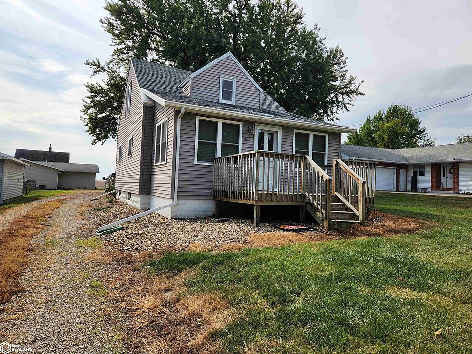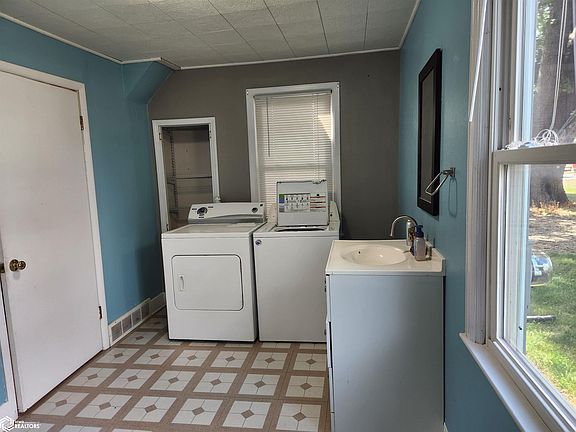 This well-maintained 1.5 story residence is located in a quiet neighborhood in Traer, Iowa. The main level features a contemporary eat-in kitchen, a living room, a remodeled three-quarter bath, and a utility room. The upper floor includes two bedrooms and a full bathroom. Additional amenities such as a clean full basement, updated wiring and plumbing, a newer roof, and vinyl siding and windows in good condition contribute to the property's value. Exterior highlights include a concrete patio and a detached two-car garage. Private tours are available by appointment.