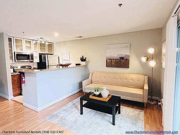 Beautifully appointed, fully furnished and all-inclusive 1 bed 1 bath condo. Walk to work, to restaurants, to shopping and to entertainment - Panther's, Knights and the Hornet Games. Onsite pool and fitness center. For additional information or to schedule a showing check out Charlotte Furnished Rentals online.
