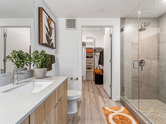 - Exterior features: , 11 Foot Ceilings, Balcony, Built in Desk, Business Center, Conference Room, Courtyard, Dog Runs, Double Sinks, EV Charging Stations, Energy Star Stainless Steel Appliances, Free Weights, Gear Closet, Gear Storage Closets, High-speed Internet Ready, LEED Gold Certified, Mountain Building, Mud Bench, Multiple Linen Closets, On-Site Maintenance, On-Site Management, Package Receiving, Peloton Spin Room, Pet Washing Station, Quartz Countertops, Soaking Tubs, Spanish Speaking Staff, Sundeck, TV Lounge, Walk-in Showers, Wood Style Flooring, Yoga Room