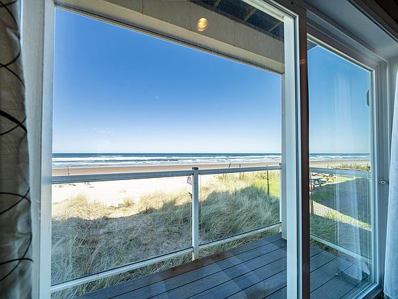 DAZZLING OCEANFRONT view from immaculate end unit. Very romantic and upscale rowhouse style condo right on Rockaway's famous 7.5 mile sandy beach. Oceanview tub with see-thru frplc in master suite. Deck off master & greatroom. Slab granite counters, travertine marble bathrooms & flooring, rich custom wood cabinets and fireplace surround, fabulous pantry with etched glass door, open kitchen. Rich, luxurious ambiance. Vacation rental allowed here, potential 70K-80K income. Furnishings negotiable.