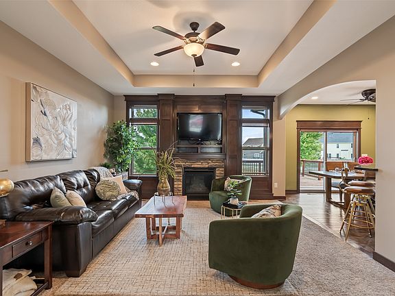 Custom built Remington Homes resale with 5 bedrooms and 3 full baths is up for grabs in a fantastic Ankeny location. This home was built for the function of everyday life with the added bonus of being THE place to entertain. This 1700 sq/ft ranch home sits on almost a half an acre, fully fenced, on a quiet cul-de-sac on the NW side of Ankeny. The first thing you'll notice is the gorgeous, stoned fireplace and the stunning woodwork throughout. The main floor features 3 beds, 2 baths, wood floors in the kitchen/dining room and a whole wing for the master. The master bedroom is designed to pamper! It's huge, with a tray ceiling, a door to the large deck that runs the whole length of the back of the home; a tiled walk-in shower, double vanities, and a closet even I'm jealous of(Hey, I like my shoes lol) The other 2 bedrooms and full bath are on the opposite side of the home. The washer/dryer stays in the laundry room, which doubles as a mud room with extra storage, cabinets, and hooks to stay organized. Head downstairs to the walk out basement offering a large family room, a wet bar, another full bathroom, and 2 MORE bedrooms. Don't worry, you'll still have plenty of space for storage (actually 2 storage areas). The walk out basement leads to a massive, stamped patio with a firepit. The cherry on top is the capacious 3 car HEATED garage, with room for a work bench, and an irrigation system already installed. AHS home warranty in place. All appliances stay.