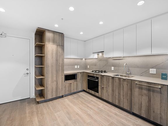 Welcome to WEST by Beedie Living in vibrant Austin Heights! This gorgeous 2 bed, 1 bath corner home offers nearly 9’ ceilings, AC, floor-to-ceiling windows and an open, efficient layout. The sleek two-tone kitchen features integrated Fisher & Paykel appliances and quartz counters with waterfall edge. Bedrooms are thoughtfully separated, with the primary showcasing a spacious walk-in closet. Step out to your oversized 180 sf balcony, perfect for relaxing or entertaining. Enjoy resort-style amenities including concierge, lounges & workspaces, fitness centre, sports court, outdoor terrace with kitchen and guest suite. Pets & rentals welcome! Steps to Safeway, shops, cafés and restaurants along Austin Ave—an ideal blend of style, comfort and restaurants along Austin Ave.