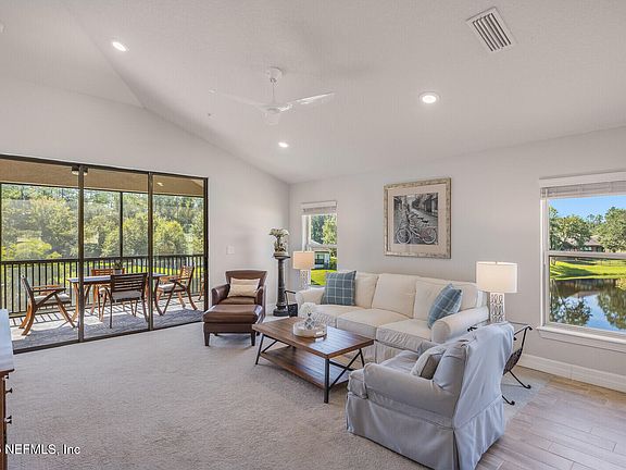 Experience the best of both worlds in this highly sought-after corner Spoonbill floor plan in the desirable 55+ community of Del Webb Ponte Vedra in Nocatee. Perfectly positioned for privacy, this spacious upstairs condo features a private garage and an open floor plan designed to capture breathtaking preserve and water views from almost every window. Step out onto the expansive screened balcony, where you can enjoy the tranquil scenery without the bother of no-see-ums on Florida cool evenings. Inside, a versatile flex room offers endless possibilities—ideal for a home office, cozy sitting area, library, or creative hobby space. Entertaining is made easy with extra driveway parking and the open floor plan flowing out to the balcony. As a resident of this gated community, you'll enjoy exclusive access to world-class amenities, including indoor and outdoor pools, pickleball, tennis, bocce ball, a fitness center, spa, performance stage, card rooms, billiards, gardening center, walking trails, and an active calendar of clubs and events. This is the Del Webb lifestyle you've been waiting foroffering both scenic serenity and vibrant community living in the heart of Nocatee. Don't forget that you also have access to the Nocatee waterparks and events. Mickler Beach and Historic St Augustine are just a short distance away. Come see for yourself why this home is the perfect blend of comfort, views, and communityyou won't want to leave.