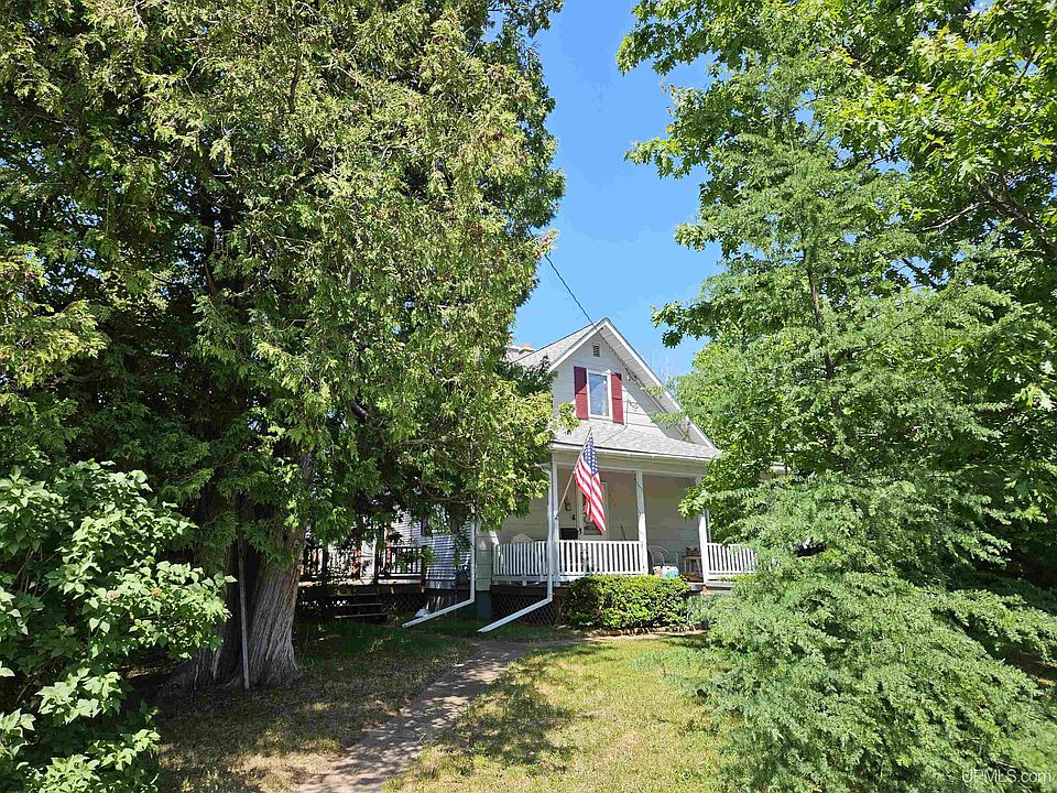 PRICE REDUCED!! Privacy in the village. This comfortable 3 bedroom 1 bath home is located in the Village of Ontonagon on a huge corner triple lot. The landscape is well maintained and has fruit trees as well as many lilac bushes. The two car detached garage offers parking and the shed is big enough for storage of all of your maintenance equipment. The home has been recently updated with furnace, water heater, and a roof, as well as newer thermal windows that are wood interior and aluminum wrapped on the exterior. It has a large kitchen and Livingroom with plenty of natural lighting, and hardwood flooring. The two main level bedrooms both have large closets. The main level full bathroom is very large and houses the washer and dryer as well. Upstairs you will find a good size walk through den and the third large bedroom with built ins and under eve storage. This is a turn key home for vacationing or an investment opportunity as the snowmobile trail and ATV trail is very close by. It is well within walking distance to downtown Ontonagon and Lake Superior as well.