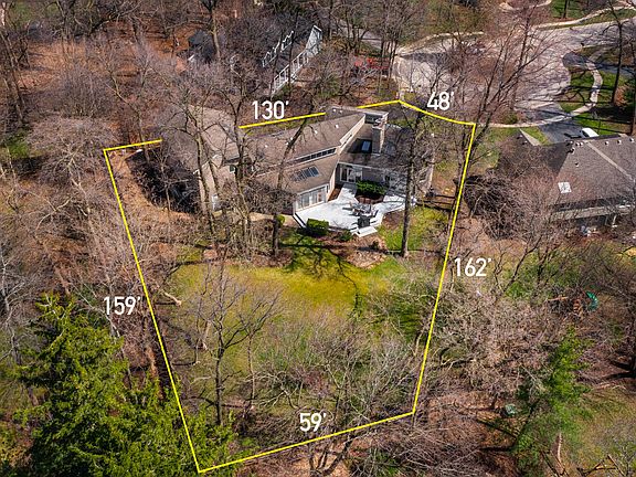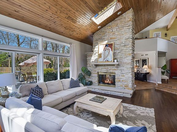 Escape to your own private oasis in this stunning contemporary nestled in the highly sought-after Surrey Hill Woods neighborhood with nearly 1/2 acre lot in east St. Charles, 5 minutes to downtown. This unique artisan home features captivating architecture, with soaring beadboard ceilings, natural element finishes, an open floor plan, and abundant natural light. Over 4000 Sqft of living space creates the perfect backdrop for entertaining and living in style, with a grand two-story living room & dining room featuring a stunning double-sided stone fireplace and walls of windows melding the exterior with the interior. The custom chef kitchen boasts high-end appliances, custom cabinetry w/quartz counters, and an eat-in dining area opening to the large exterior deck for al fresco dining. This heart of the home space encompasses a cozy family room, secondary access to the upper level, a built-in home office space, and passage to the mudroom, powder room, and 3.5 heated car garage. Completing the main floor, the 4th bedroom ensuite doubles as an office or in-law's quarters. Retreat to the luxurious master suite complete with private loft and French, glass-paneled door entry, ensuite bathroom featuring dual vanity w/ marble counters, soaking tub, large shower spa, and walk-in closet. The spacious secondary bedrooms share a hall bath and access to a custom workspace and a large bonus/flex room. The finished basement adds additional space for recreation and storage. Tucked away on a quiet cul-de-sac in a wooded setting, this home offers a tranquil retreat while still providing easy access to in-town amenities. Highly acclaimed St Charles CUSD 303, Lincoln, Thompson, St Charles East HS. Don't miss the opportunity to own this one-of-a-kind home in a prime location.