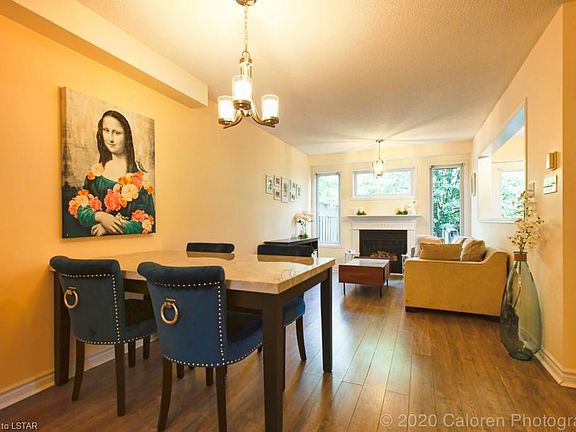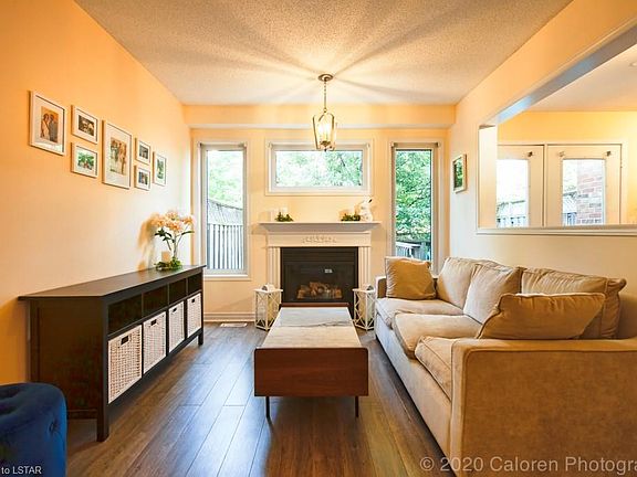 Amazingly convenient location! Just minutes to restaurants and shopping, downtown or the gym. This townhome offers an open concept floor plan with a lovely living room with gas fireplace surrounded by windows with views of trees and greenery . The kitchen offers terrific storage and glass garden doors to private deck. The upper level has 2 good sized bedrooms. The master has ensuite privileges with a soaker tub and separate shower. The lower level provides for additional living space with a finished family room, a full bathroom, laundry and storage area. Recent upgrades include new furnace and central air 2019 and new flooring, painting and light fixtures. Quick access to UWO and downtown.