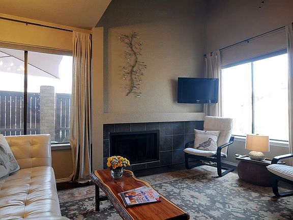 THIS SMARTLY STYLED CONDO BOASTS A LARGE MASTER BEDROOM DOWN AND STYLISH PATIO FOR RELAXING! Fresh paint. Neutral colors. Updated, light filled kitchen with granite counters, ceramic tile floors and fresh paint. Decorative light fixtures, wood burning fireplace, spacious closets, vaulted ceilings, skylight. Loft is excellent 2nd living area or office. Beautiful manicured grounds. Close to pool, canal and walking trail.Upgraded AC.
