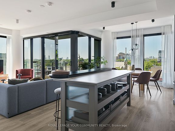 The Waterworks building, by now, hardly needs any introduction... impeccably built, award-winning, well run and vibrant. This particular suite began as a two-bedroom layout and has been thoughtfully converted into a one-bedroom, resulting in an extraordinary sense of space and flow. The simple edit elevates the home into something unique: a residence with sweeping skyline and charming city views, paired with a generous corner balcony that extends the living outdoors. With meticulously upgraded lighting, kitchen cabinetry and custom wardrobes, double layered window treatments all allow to personalize the level of lighting and privacy to one's mood. The Signature split bathroom is smartly laid out to provide privacy when entertaining or when there is more than one occupant in the household. The option to convert back to a two bedroom is available and can be easily done (before closing, if so desired). Tasteful and beautiful local custom wood furniture combined with pieces from Danish design houses such as &Tradition and Audo (formerly Menu) can be all available for purchase. Vibrant Food Hall and patios, event spaces, flower shop, Susur Lee's restaurant, and now open YMCA with a pool, are right at the door. Surrounded by the Health and Wellness corridor and Ace hotel and many many more amenities, dining, shopping, and cultural experiences just beyond. Situated in one of downtown Toronto's most walkable neighbourhoods, this home offers an unmatched balance of privacy, community and connection to the city's best.The building, alone, has its own well equipped private gym, a stylish lounge/party room for private events, fantastic management and lively social events for residents. Also a spectacular rooftop with barbecues that hosts a summer cinema series.