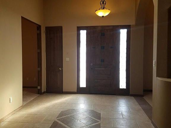 Remarkable single level custom home on a .50 acre lot. This home has room for everyone. Beautiful grand front door leads to spacious and open entry. Formal dining with archways, formal living area with corner kiva fireplace and wall of windows. kitchen is large with an island, breakfast bar, granite counter tops, cooktop and pantry. Family room is open and has built-ins. This home offers so many options with a guest suite & a bedroom w/ access to the 3rd separate bay garage. Large master suite has a double door entry w/ a cozy sitting area complete with kiva FP. 2 walkin closets, double sinks, large luxurious step up garden tub & access to backyard patio and private courtyard