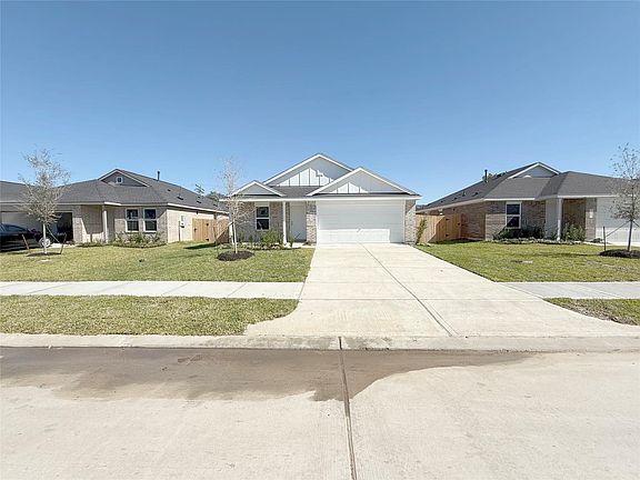 Beautiful newer Lennar home in Riverwood Ranch featuring modern finishes, an open-concept floor plan, and energy-efficient design. This 3-bedroom, 2-bath home offers a spacious living area, bright kitchen with island, and a private primary suite with walk-in closet. Enjoy a covered patio and fenced backyard perfect for relaxing or entertaining. The community includes a resort-style pool, playground, and walking trails, all just 40 minutes from Downtown Houston via TX-288. Move-in ready and perfectly located near shopping, dining, and top-rated schools in Angleton ISD!