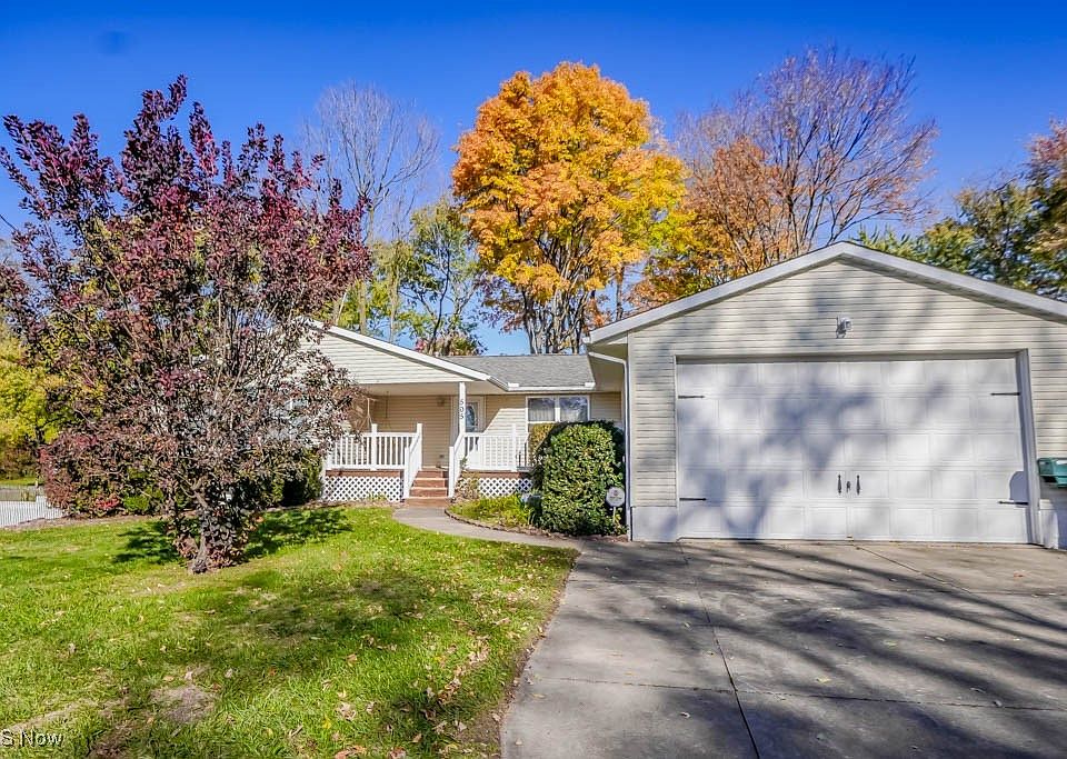 Set on nearly half an acre in North Canton Schools, this 2-bedroom, 2-bath ranch has a comfortable, easygoing feel from the moment you arrive. A covered front porch welcomes you inside to a spacious living area filled with natural light. The open layout connects to the dining space and kitchen, where you’ll find plenty of cabinet storage, all appliances, and room to gather for meals. French doors open to a bright enclosed porch that overlooks the yard, a peaceful spot to enjoy your morning coffee or unwind at the end of the day. Two bedrooms are tucked down the hall, including a primary suite with a walk-in closet and private bath. Downstairs, the walkout basement offers a gas fireplace, built-in shelving, and plenty of space for storage or hobbies. Outside, mature trees frame the yard, complete with a fire pit area for evenings under the stars. The oversized 20x40 garage provides workshop space and potential to hold up to four cars, adding great versatility for vehicles, tools, or projects. Conveniently located near shopping, dining, and highway access, this home offers a wonderful mix of comfort and potential.